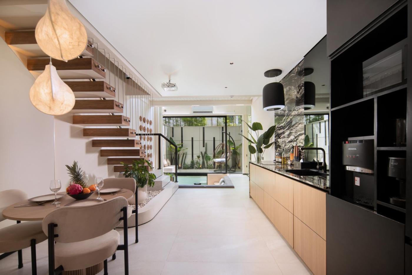 One-Bedroom Townhouse with Plunge Pool - A3. Featuring a private entrance, this air-conditioned villa consists of 1 living room, 1 separate bedroom and 1 bathroom with a shower and a hairdryer. In the fully equipped kitchen, guests will find a stovetop, a refrigerator, a microwave and a tea and coffee maker. The villa is furnished with a desk and a seating area and provides a dining area, a wardrobe and pool views. The unit offers 1 bed. ;