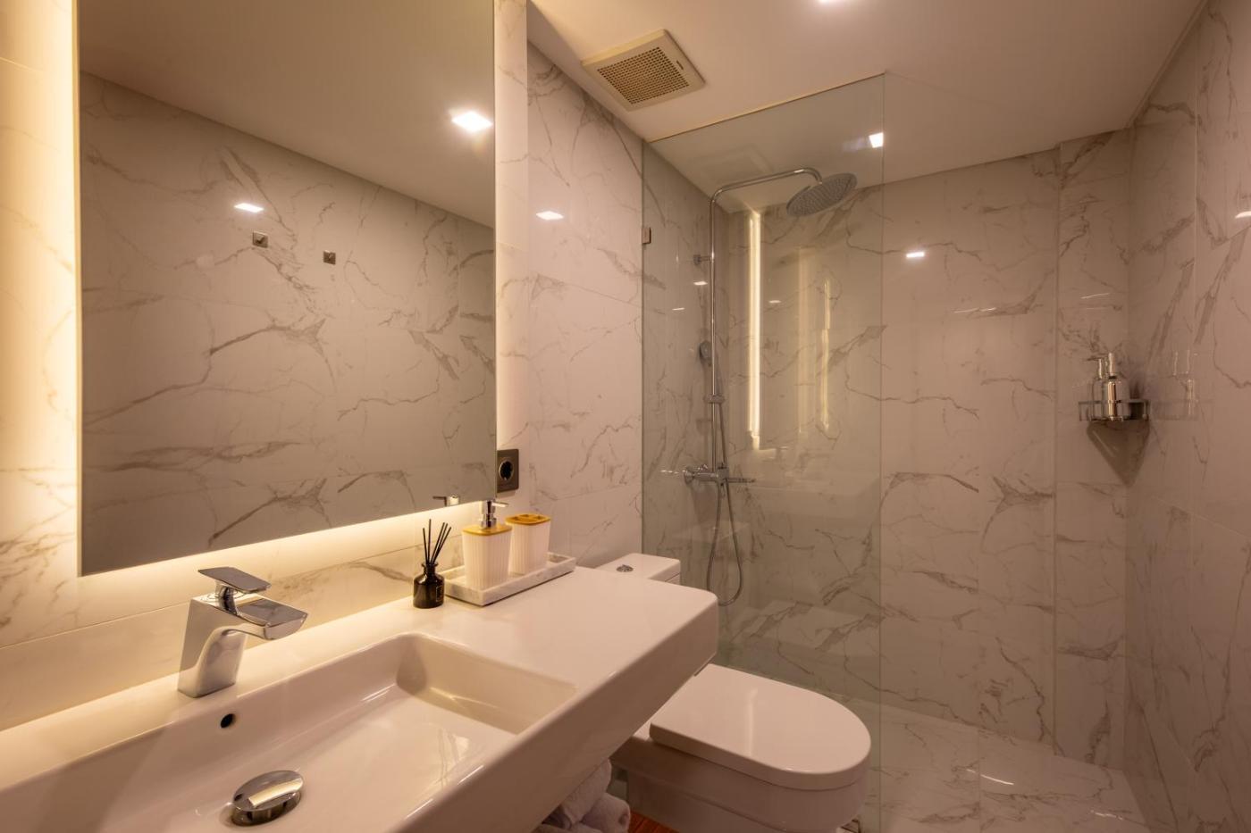 Two-Bedroom Apartment. This spacious apartment features 1 living room, 2 separate bedrooms and 2 bathrooms with a shower and free toiletries. Meals can be prepared in the kitchen, which has a stovetop, a refrigerator, a dishwasher and kitchenware. This air-conditioned apartment comes with a dining area, a flat-screen TV with streaming services soundproof walls and a balcony. The unit has 2 beds.