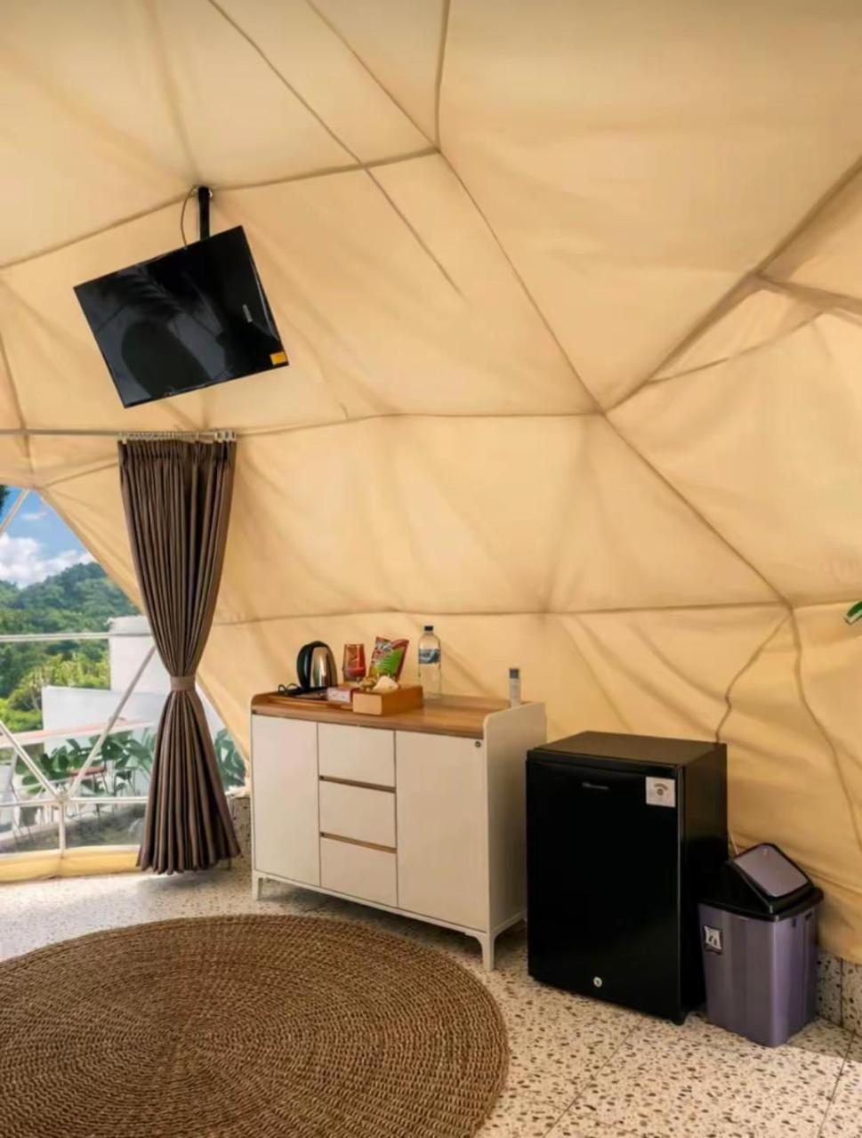Tent. This tents special feature is the hot tub. This tent is air-conditioned and features a private bathroom, a barbecue and a terrace. The unit offers 3 beds.