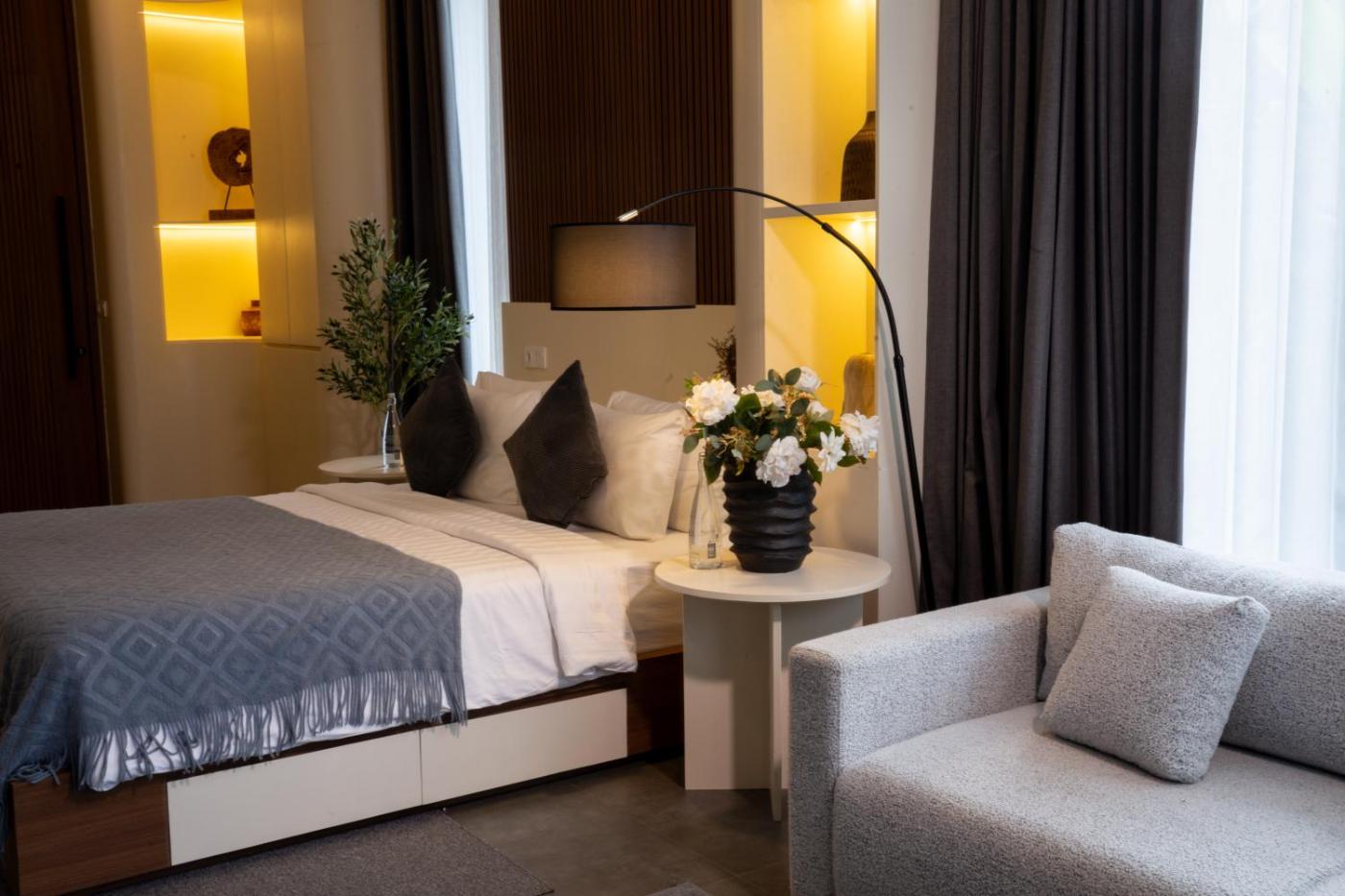 Deluxe Villa. This villas special feature is the private pool. This spacious villa consists of 1 living room, 4 separate bedrooms and 4 bathrooms with a bath and free toiletries. The villas kitchen, which features a stovetop and kitchenware, is available for cooking and storing food. The air-conditioned villa provides a flat-screen TV, a private entrance, a minibar, a seating area as well as garden views. The unit offers 7 beds.